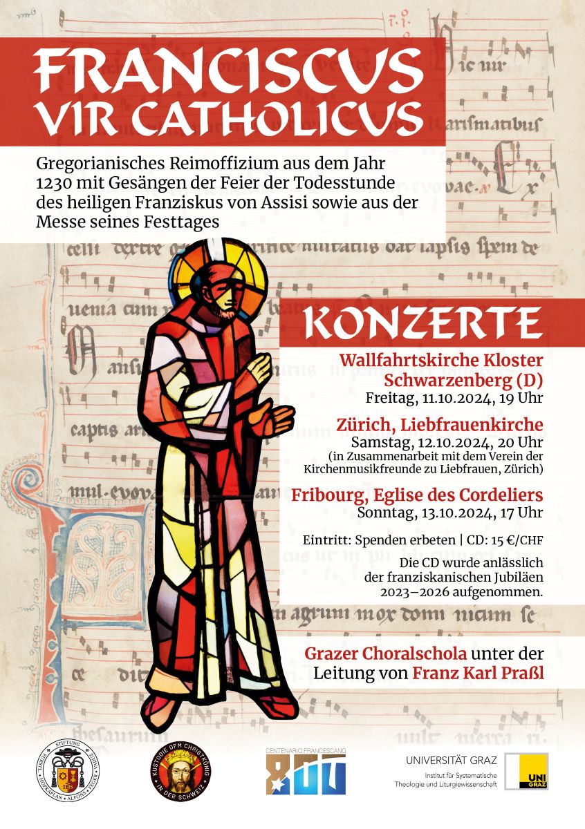 Anlässlich der franziskanischen Jubiläumsjahre 2023-2026 wurde von der Jubiläumskommission der Schweizer Franziskaner das Projekt in Angriff genommen, das gregorianische Reimoffizium zu Ehren des heiligen Franziskus, welches der Franziskaner Julian von Speyer (+1250) um 1232 komponierte, mittels einer CD-Aufnahme zu veröffentlichen. Dieses Offizium wurde bis zur Liturgiereform, in Folge des Zweiten Vatikanischen Konzils, über 700 Jahre in der franziskanischen Ordensfamilie gesungen. Bis heute gibt es keine geeignete Aufnahme dieses Offiziums, während dasjenige für das Fest der heiligen Klara schon 2010 mit der CD «Clarae Claritas» publiziert wurde, damals mit der Choralschola des Instituts für Kirchenmusik und Orgel der Kunstuniversität Graz, unter der Leitung von Herrn Prof. Franz Karl Prassl, seinesgleichen gefragter Gregorianik-Spezialist. Obwohl dieser im Jahr 2022 seine Tätigkeit in Graz durch Emeritierung beendet hat, konnte er für das Franziskus-Reimoffizium für eine erneute Zusammenarbeit gewonnen werden.